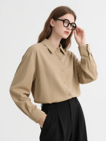 Classic Beige Cotton Blend Shirt for Minimalist Design